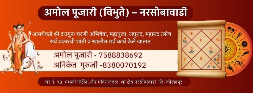 The holy place of sangam of Krishna and panchganga and hermitage of the second avtar of shri guru dattatray shri nrushihasraswati swami maharaj and also known as rajdhani of shri guru dattatray well known in maharashtra in Kolhapur Known as Narsobawadi or nurshihawadi. At this place shri nurshihasarwati swami maharaj did tapasya for 12 years and they established their paduka and they gave ashirvad to the pujari's of narsobawadi and from then till now nearly about 20 generation pujari's are doing seva of manohar paduka Therefore narsobawadi has become the holy place in Maharashtra and many people come here to take ashirvad from guru dattatrya and practice their puja vidhi etc. abhishek seva,rudra abhishek,maharudra ,mahapuja ,gurucharitra parayan on the manohar paduka of shri guru dattatray are practiced"